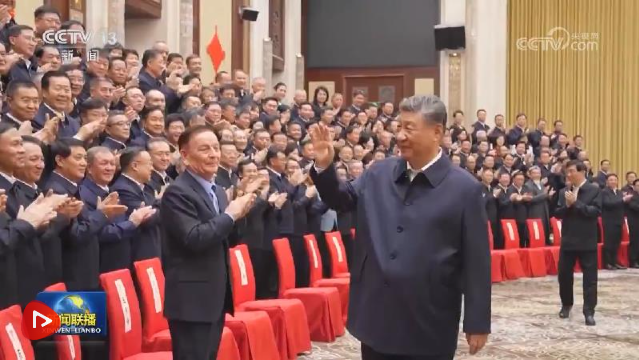 习近平等来到接见现场时,全场响起长时间热烈掌声。习近平向大家挥手致意,不时同代表亲切交流,并同大家合影留念。