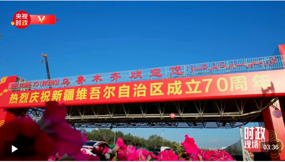 央视新闻讯 中共中央总书记、国家主席、中央军委主席习近平率中央代表团23日下午乘专机抵达乌鲁木齐,出席新疆维吾尔自治区成立70周年庆祝活动。14时20分许,习近平乘坐的专机在天山国际机场降落,等候在停机坪的新疆各族各界群众热烈欢呼。习近平走下舷梯时,少先队员献上鲜花。各族群众代表身着民族服饰,载歌载舞,欢迎总书记的到来,表达对总书记的衷心祝福。