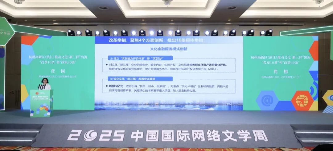 活动上,高新区(滨江)发布了推动文化“新三样”出海“改革10条”和推动文化“新三样”发展“政策40条”(征求意见稿),以“政策+服务+改革”组合拳,打造文化“新三样”出海产业生态最优区,为浙江“文化巨轮”出海先行示范。