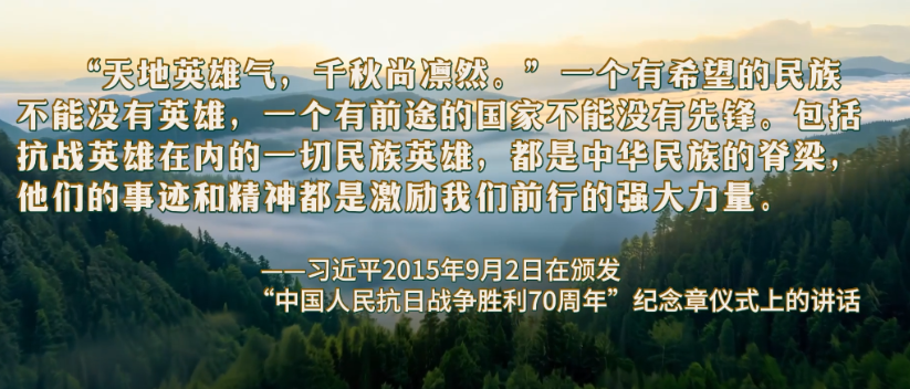“天地英雄气,千秋尚凛然。”一个有希望的民族不能没有英雄,一个有前途的国家不能没有先锋。包括抗战英雄在内的一切民族英雄,都是中华民族的脊梁,他们的事迹和精神都是激励我们前行的强大力量。