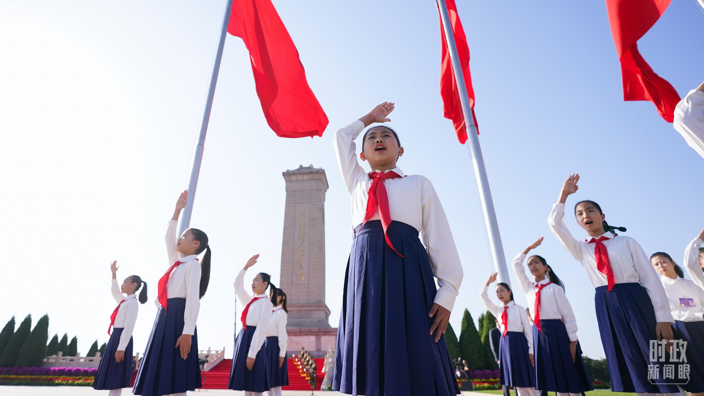 △参加烈士纪念日向人民英雄敬献花篮仪式的少年儿童。(总台记者李晋拍摄)