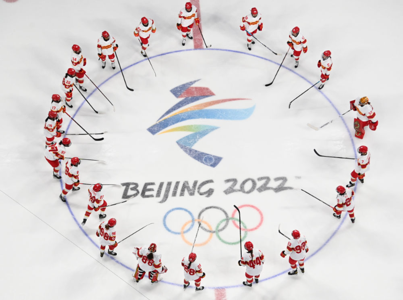 △北京2022年冬奥会是迄今女性参赛比例最高、参与项目最多的一届冬奥会。图为中国国家女子冰球队在赛场。