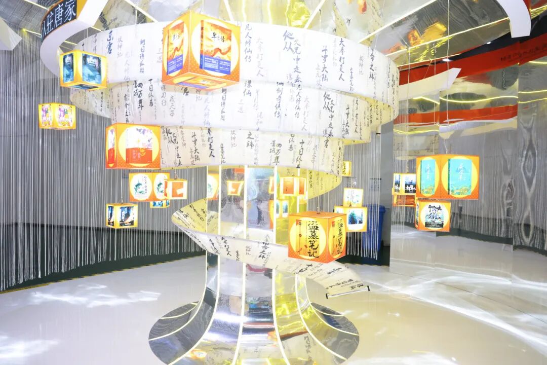 走进滨江馆,首先映入眼帘的便是气势恢宏的“IP热岛:中国网络作家村”。《庆余年》《东宫》《盗墓笔记》等一部部耳熟能详的作品,以一盏盏孔明灯的形式升起,汇聚成一棵“生命树”,树上垂下的“珠帘玉幕”,在灯光下如同涓涓细流,不仅给馆内增添梦幻感,还寓意“文化创意”源源不断、生生不息。