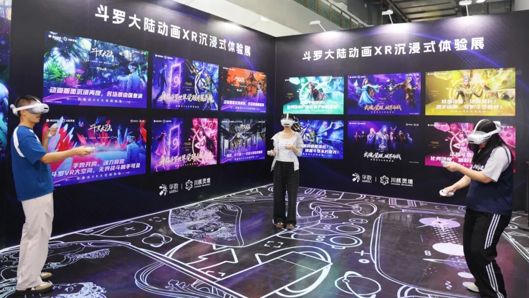 其中最引人注目的,莫过于由华数文化带来的《斗罗大陆》沉浸体验区。长长的队伍足以证明其超凡魅力。观众戴上沉浸式设备,瞬间便能穿越进小说描绘的奇幻森林与战场,与主角并肩作战,亲身体验魂环加持的震撼感。这已不再是简单的阅读或观看,而是一次真正“走进故事里”的冒险。一位刚体验完的市民兴奋地说:“太真实了!手柄会感受到震动,仿佛能感受到魂技释放的能量波动,太好玩了。