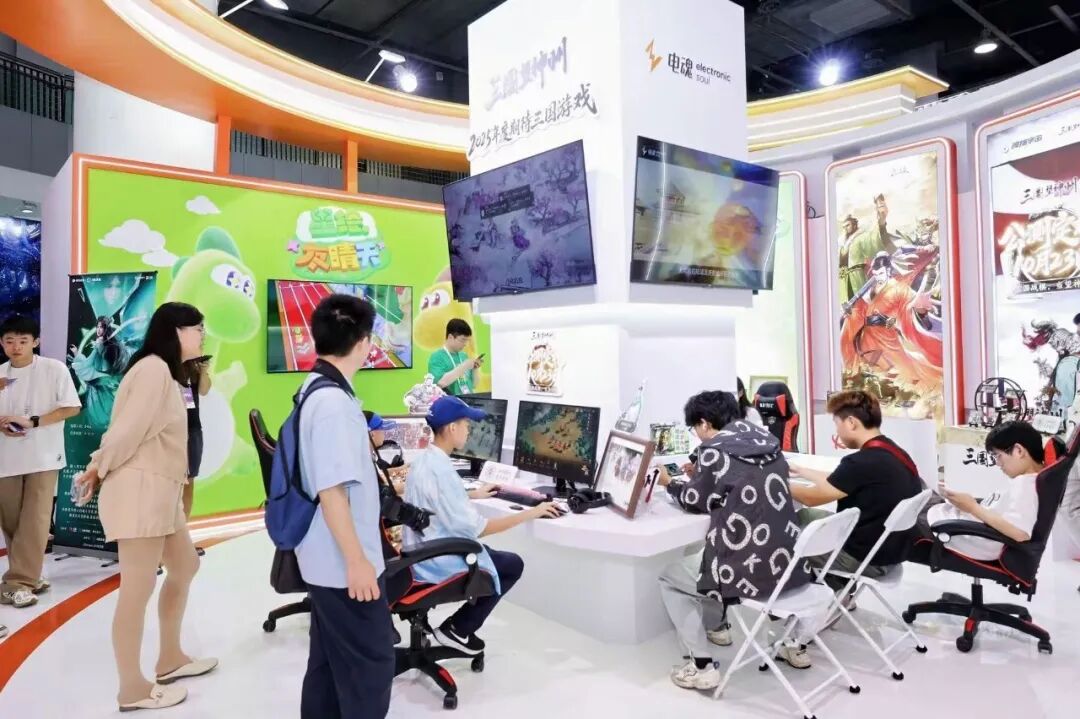 紧邻“IP热岛”的,是氛围热烈的“优质游戏试玩区”。网易(杭州)、电魂网络、游卡网络、弹指宇宙等杭州本土乃至全国的游戏巨头齐聚于此,带来了多款尚未正式上线或最新版本的热门游戏:《星绘友晴天》《三国望神州》《卢希达:起源》《野蛮人大作战2》《月相计划》等。玩家们可以在此抢先试玩,与工作人员面对面交流。现场键盘鼠标的敲击声与玩家的惊叹声此起彼伏,交织成一首激昂的数字交响曲。