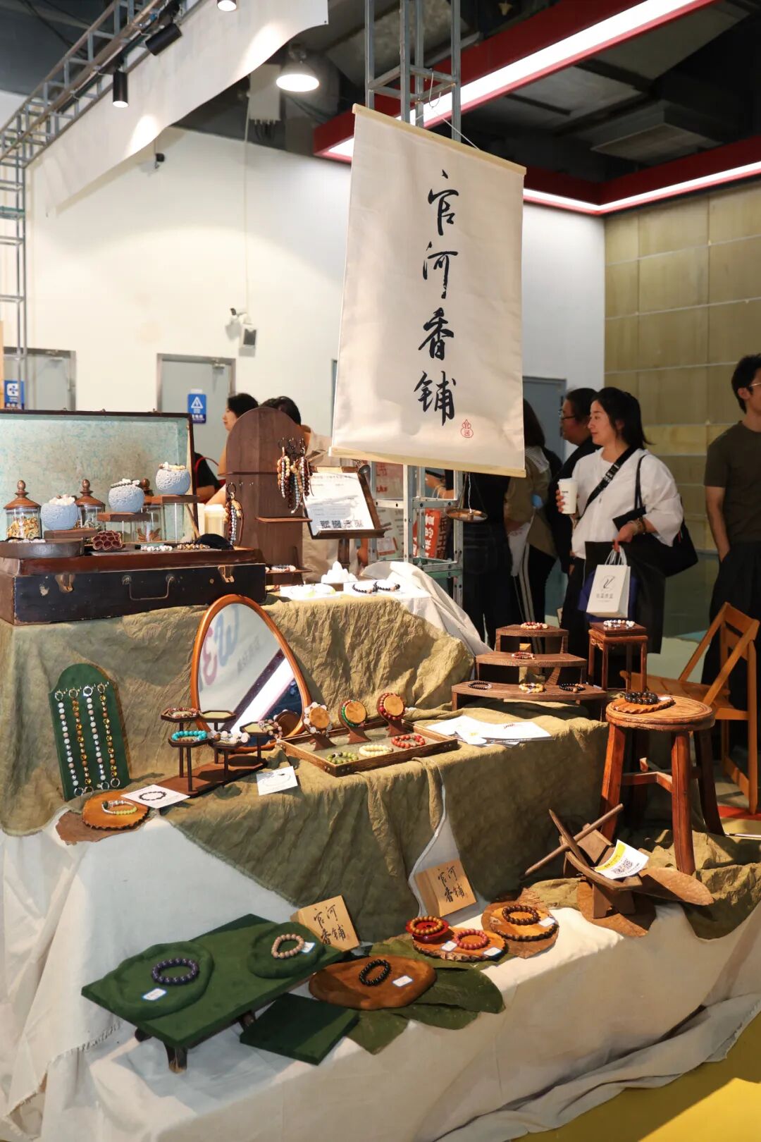 如果说一楼的滨江馆是数字潮流的澎湃前沿,那么移步至B馆3楼,则能邂逅一份闹中取静的匠心与雅致。首次参加文博会的“官河香铺”推出了一个充满自然气息的摊位。