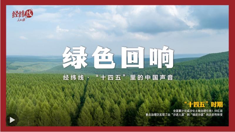 人民日报客户端讯 “中国式现代化是人与自然和谐共生的现代化。”当呼啸的风在沙漠崛起的“光伏长城”前降低了分贝,当塞罕坝百万亩林海的涛声谱写向绿而行的乐章。听!这是“十四五”时期的绿色回响。