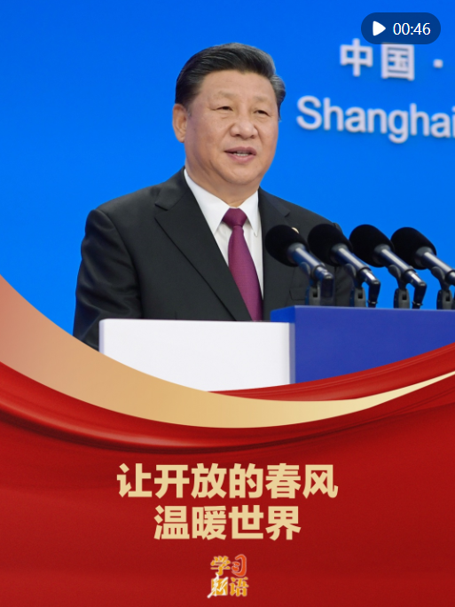 习近平主席曾在进博会上,用三个“不会变”,诠释了中国与世界共享机遇、互利共赢的胸怀与担当,展示了坚定不移的开放决心。进博之约向世界许下中国之诺:中国愿同各国一道,共建开放型世界经济,让开放的春风温暖世界!