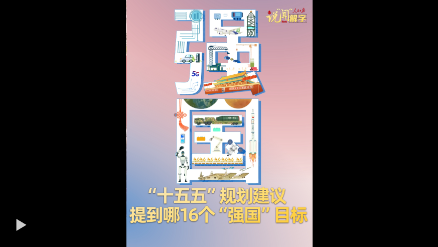 “十五五”规划建议中提到了16个“强国”目标。规划建议聚焦哪些实际问题?我们将在哪些地方发力?一支视频读懂。