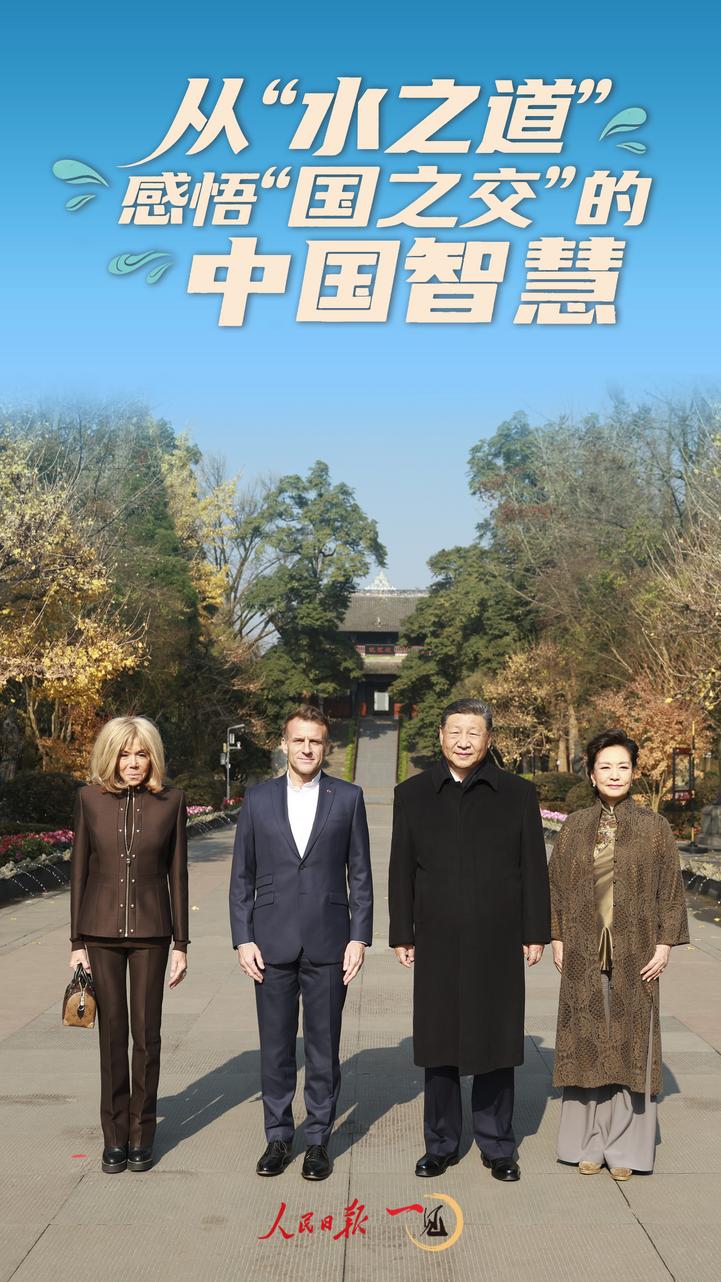 这一次,在都江堰,习近平主席向马克龙总统介绍两千多年前建成的水利工程,“每次来到都江堰都能感受到先人因地制宜、顺势而为、天人合一、治水利民的伟大,从中汲取到治国理政的智慧”。