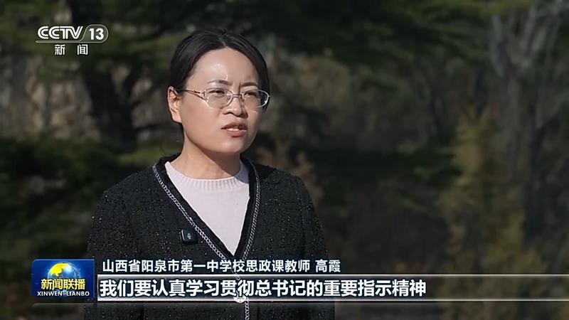 山西省阳泉市第一中学校思政课教师 高霞:我们要认真学习贯彻总书记的重要指示精神,把立德树人融入思想道德教育、文化知识教育、社会实践教育各个环节,激励青少年,立志为强国建设、民族复兴而读书。