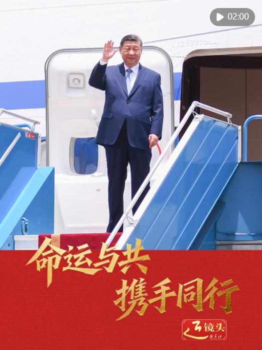 当地时间6月16日中午,国家主席习近平乘专机抵达阿斯塔纳,应哈萨克斯坦共和国总统托卡耶夫邀请,出席第二届中国-中亚峰会。这是习近平向欢迎人群挥手致意。新华社记者 殷博古 摄