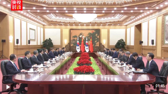 习近平向韩国人民致以诚挚新年祝福。习近平指出,作为朋友和邻居,中韩应该多走动、常来往、勤沟通。中方愿同韩方一道,牢牢把握友好合作方向,秉持互利共赢宗旨,推动中韩战略合作伙伴关系沿着健康轨道迈进,切实增进两国人民福祉,为地区乃至世界和平与发展正向赋能。