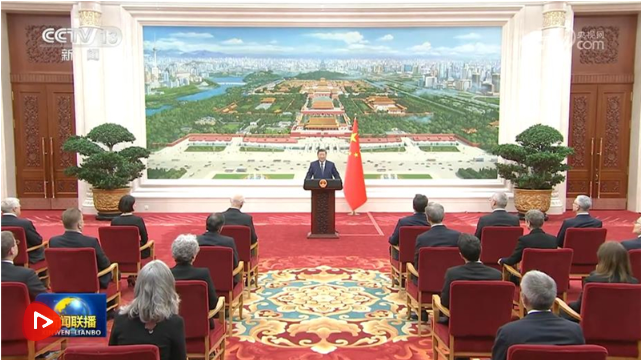 仪式结束后,习近平在北京厅对使节们发表讲话。