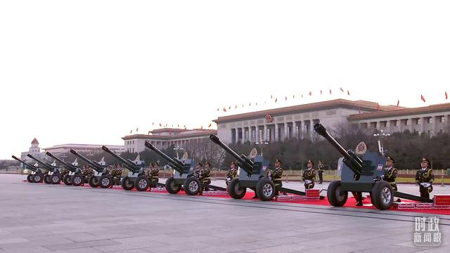 △1月5日下午,天安门广场鸣放礼炮21响,欢迎韩国总统李在明访华。