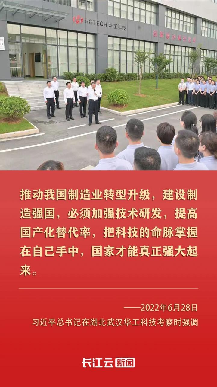 2022年6月,习近平总书记来到湖北武汉考察,第一站就来到光谷,来到华工科技。他指出,湖北武汉东湖新技术开发区在光电子信息产业领域独树一帜。要加强技术研发攻关,掌握更多具有自主知识产权的核心技术,不断延伸创新链、完善产业链,为推动我国光电子信息产业加快发展作出更大贡献。