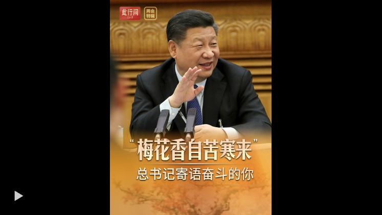 人民日报客户端讯 人民大会堂内有一幅巨型梅花图。它立于代表委员参加全国两会的必经路上,见证了他们履职尽责的历程。全国人大代表米雪梅行经此处,总会想起习近平总书记“梅花香自苦寒来”的寄语。这句话是对代表委员的殷切关怀,也是对实干人生的生动诠释。