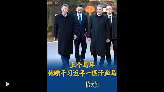 3月18日,国家主席习近平会见土库曼斯坦民族领袖、人民委员会主席别尔德穆哈梅多夫。2014年,别尔德穆哈梅多夫曾赠予中方一匹汗血马。“推动中土关系像汗血宝马一样马不停蹄、一马当先”,一起回顾中土的“骏马外交”。