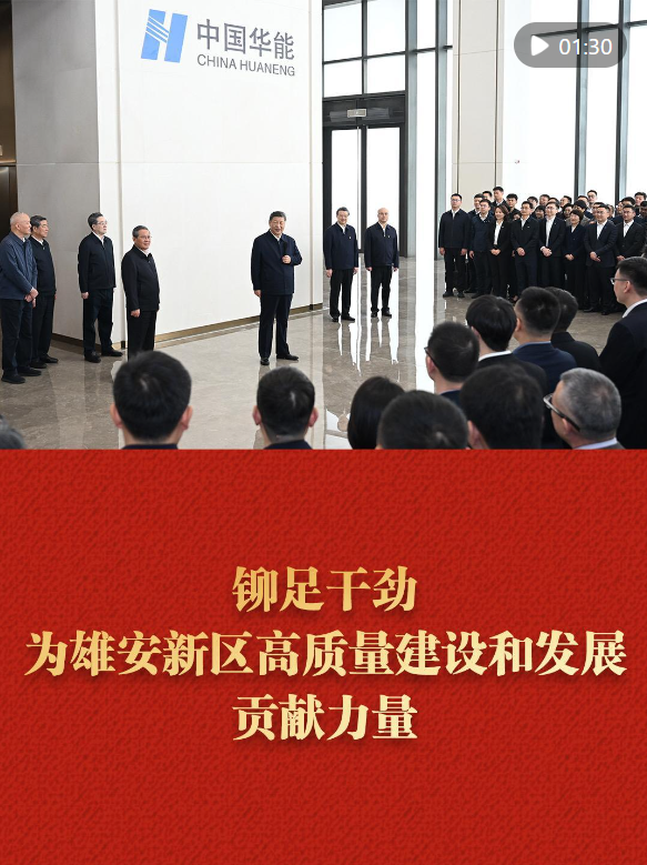 3月23日,习近平总书记来到河北雄安新区,察看启动区建设进展,考察中国华能集团有限公司,了解雄安新区建设发展情况,亲切慰问入驻和在建疏解单位干部职工代表。