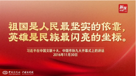 “祖国是人民最坚实的依靠,英雄是民族最闪亮的坐标。”中共中央总书记、国家主席、中央军委主席习近平曾在中国文联十大、中国作协九大开幕式上,这样阐述他心中的“英雄”。