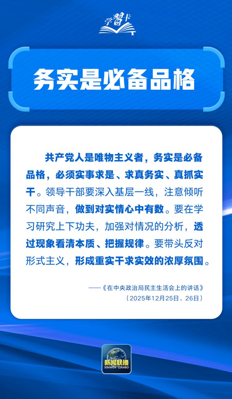 当前,全党正扎实开展树立和践行正确政绩观学习教育。广大党员、干部要筑牢正确政绩观思想根基,不驰于空想、不骛于虚声,努力为人民出政绩、以实干出政绩。