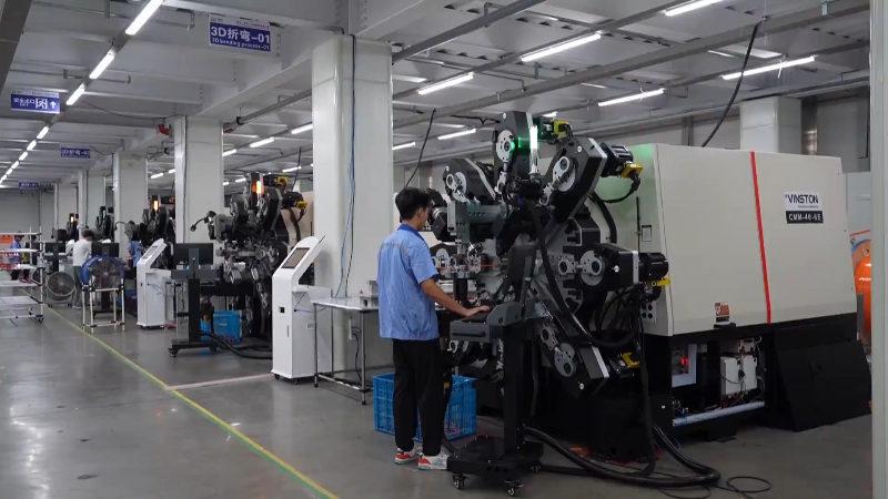 豪达(浙江)汽车配件有限公司导线事业部经理 谈若赟:我们现在的机器全部是靠数据程控,自动选择它折弯的角度,实现3D折弯。