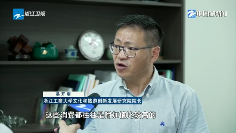 浙江工商大学文化和旅游创新发展研究院院长 易开刚:从传统的风景到场景,从观光到体验,“文化游”越来越得到消费者认可,这些消费都往往是附加值比较高的,文化含量也比较高的,这样一些消费就能够留住我们的游客,这个市场空间非常巨大。