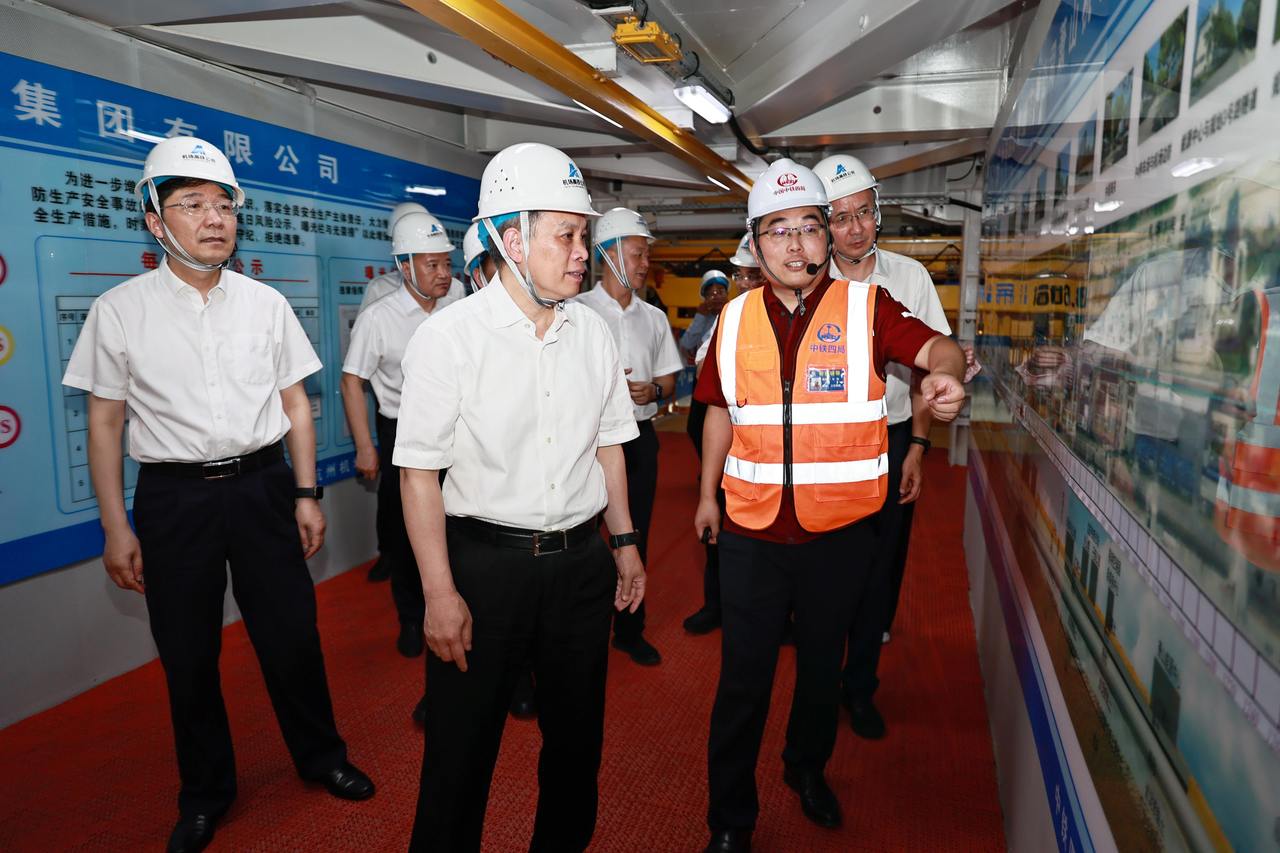 27日,省长刘捷来到铁路杭州萧山机场站枢纽及接线工程现场,深入隧道盾构工作区,实地察看“启杭号”盾构机现场作业情况。潮新闻记者 陆乐 摄
