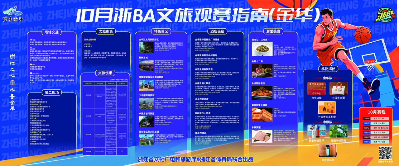 这个10月,带上“浙BA”文旅观赛指南,为心仪的球队呐喊助威,让“跟着‘浙BA’去旅行”的美好体验,从赛场轻松延伸至城市的每个角落,真正实现“观一场球赛,游一座城”的双重收获。