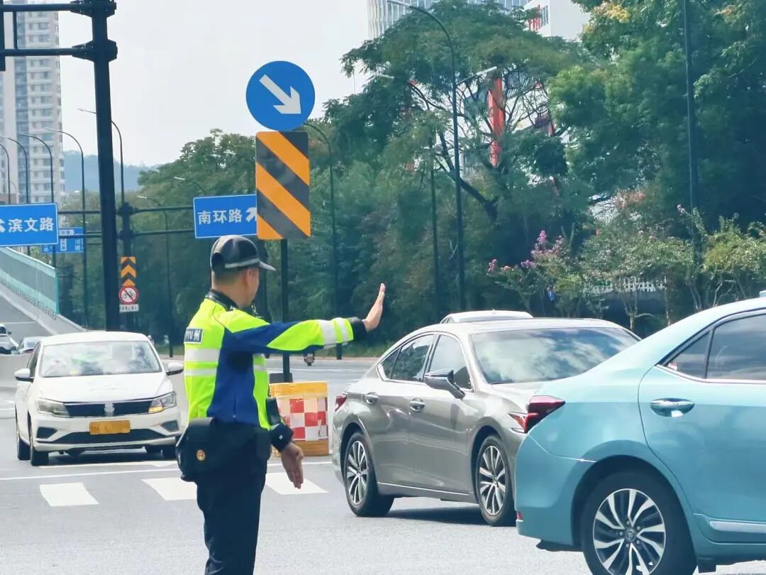 在川流不息的国庆车流中,总有一抹“荧光绿”指引着方向。他们是滨江的交警同志,在各大主干道与活动场馆周边沉着指挥、精准疏导,保障着节日出行的平安与畅达。