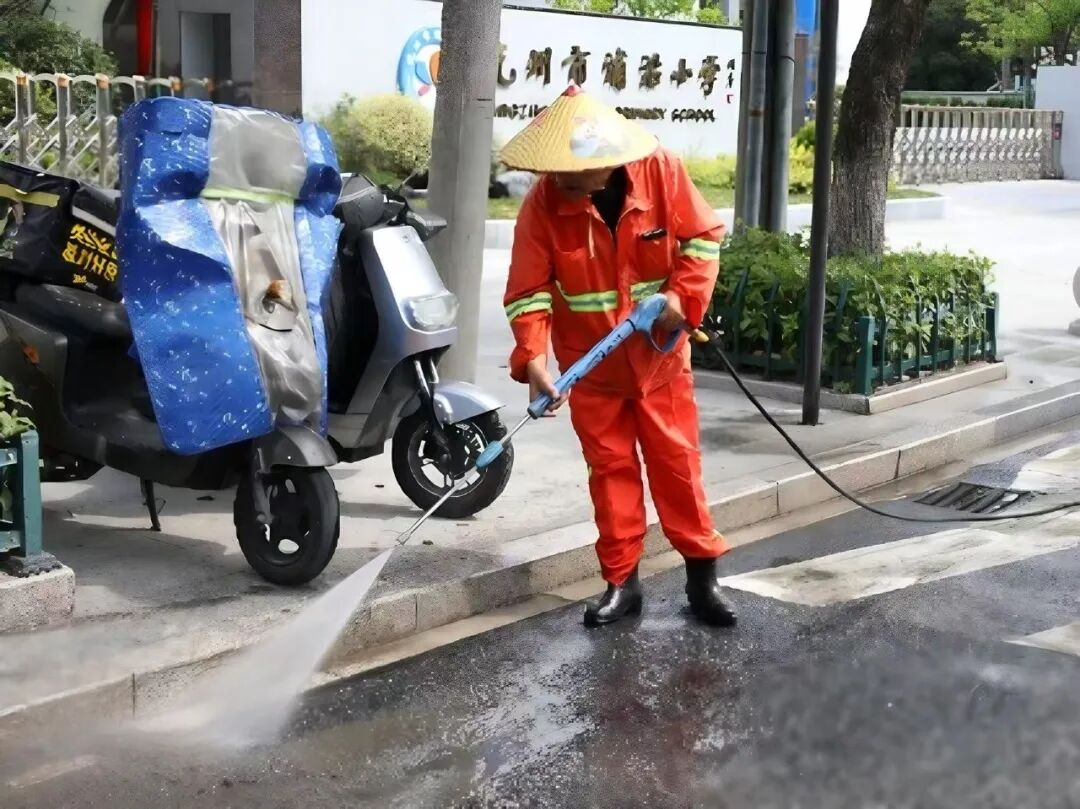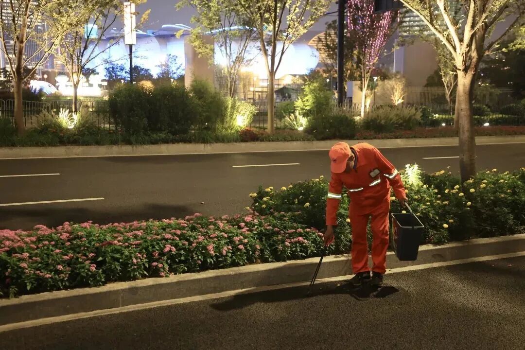 从清晨5点的第一遍普扫,到深夜10点的最后一次巡回保洁,他们的工作时间跨越了整整一天。在游人如织的景区旁,在车流不息的马路间,他们弯腰、清扫、擦拭,快速清理着节日带来的增量垃圾,用汗水细心守护着滨江的“颜值”。