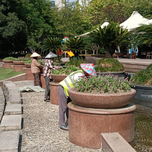 当清晨的第一缕阳光洒在滨江新换的时令花卉上,环卫工人们早已忙碌多时。为了延续这份为国庆精心打造的“繁花画卷”,环卫工人们实时掌握花卉生长状况,及时补植萎蔫或受损植株,确保市民和游客能在整洁优美的环境中赏景过节。