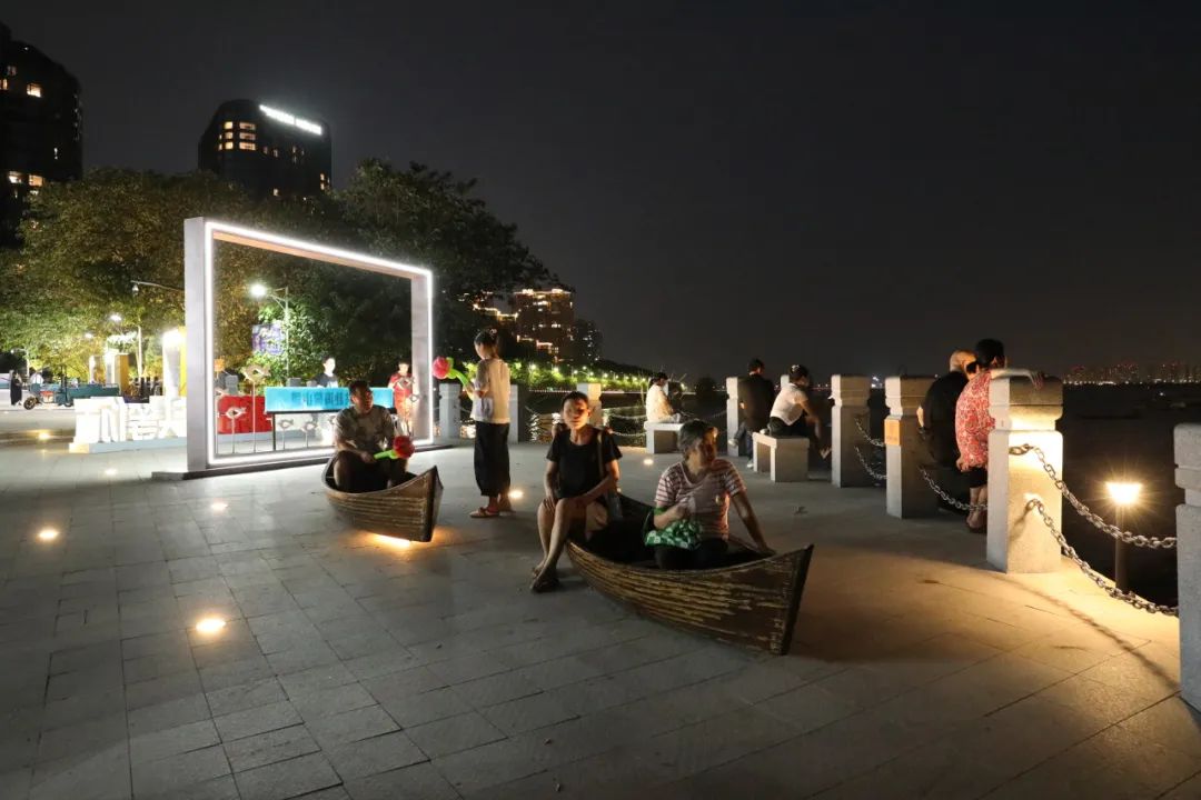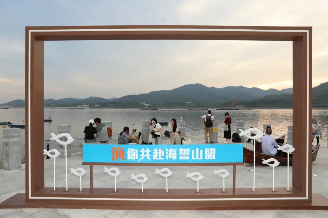一系列融合钱塘江文化符号的特色地标惊艳亮相:依托绝美夕阳打造的“金麟探潮”取景框、复原的传统木渔船停泊场景、浪漫梦幻的“渔你共赴海誓山盟”发光艺术装置……可观、可憩、可玩、可拍。