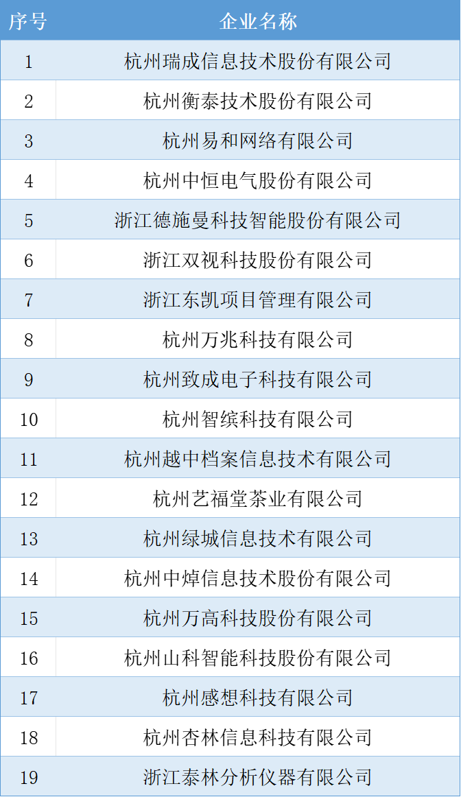 2025年浙江省AAA级“守合同重信用”继续公示企业名单(滨江区)