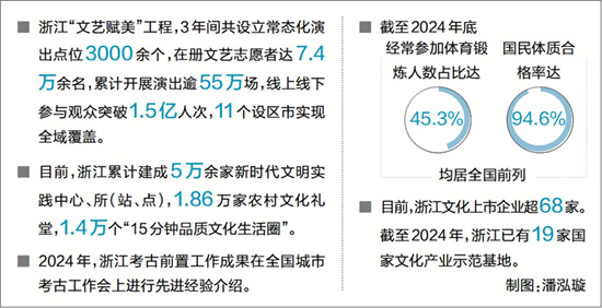 2025年,是“十四五”规划收官之年。过去五年,浙江一以贯之深入实施文化建设“八项工程”,以习近平文化思想为引领,以“文化+科技”“文化+旅游”“文化+民生”作为改革创新举措,加快建设高水平文化强省,让文化越来越成为浙江高质量发展建设共同富裕示范区的强劲动力。