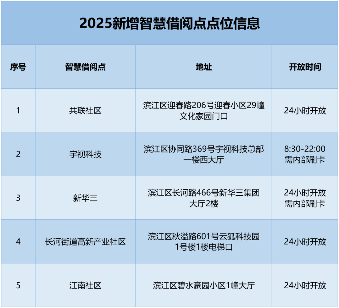 2025年,滨江新增5个智慧借阅点并正式投入运营,进一步织密了全区“15分钟品质文化生活圈”的网络,让书香弥漫在滨江的每一个角落。