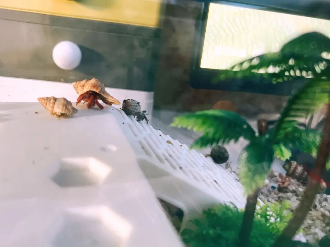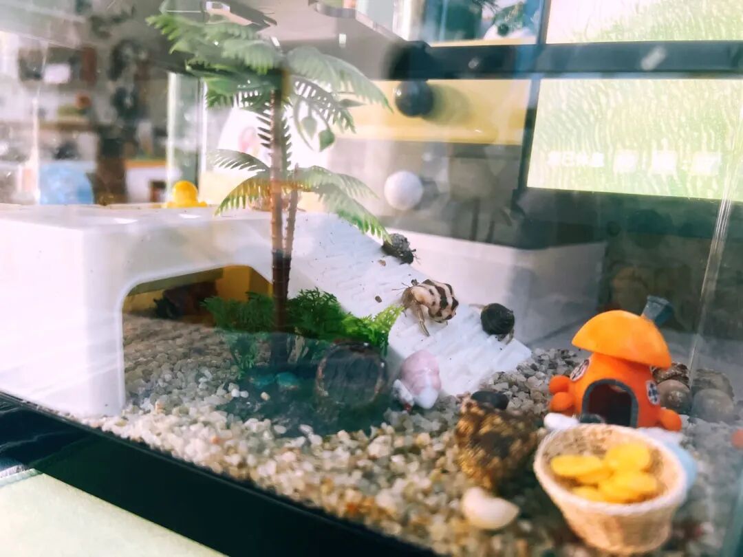 @🍎:我的上班搭子是缸里的寄居蟹!它们总是背着小壳,慢悠悠在沙子里刨啊刨,像在认真“打工”搞事业。疲惫的时候就看看它,晃悠悠换壳溜达,瞬间被治愈啦!