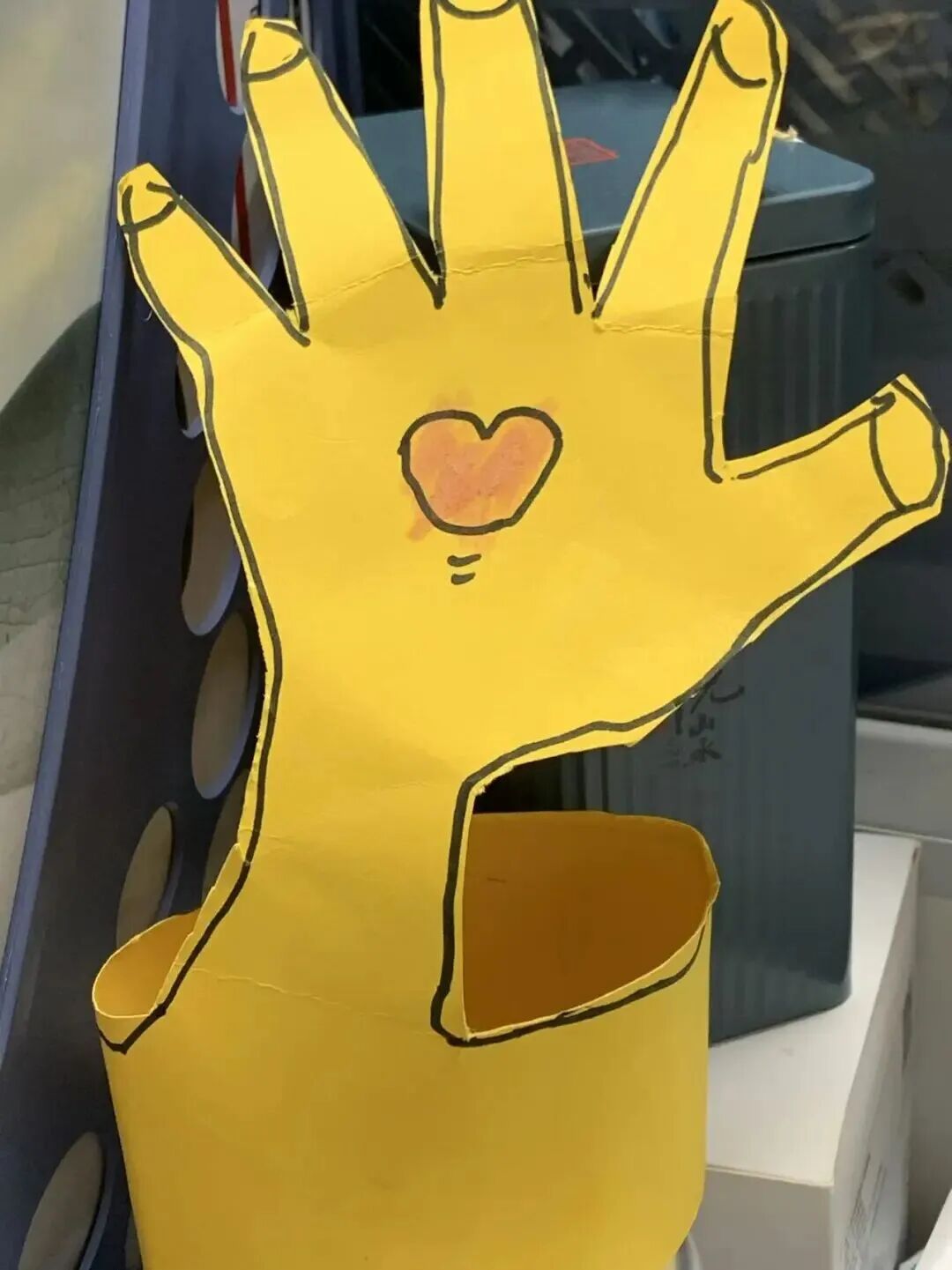 @团又团:小朋友在幼儿园画的手指奖杯。