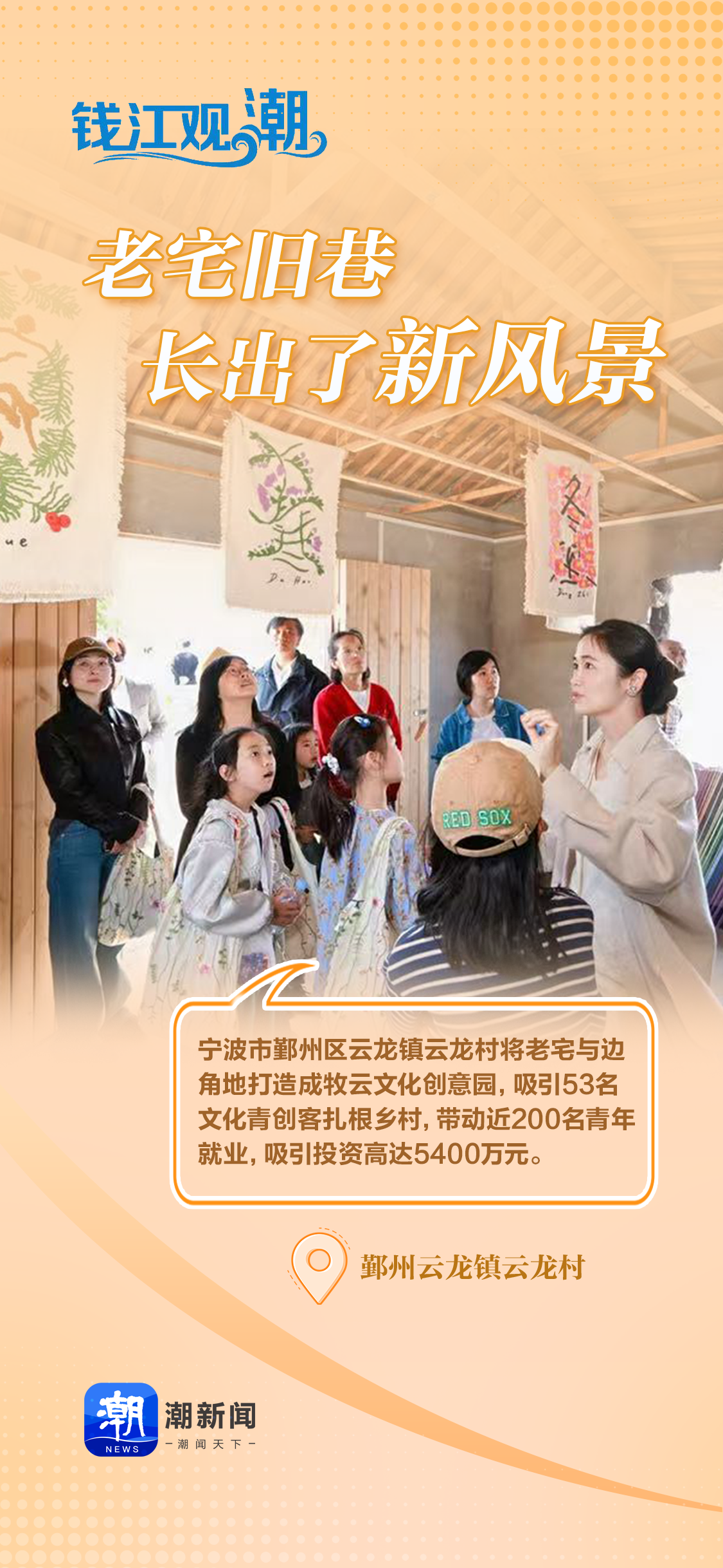 鄞州牧云文化创意园的精彩蝶变再次证明,乡村不仅有广袤的土地,更是一座保存着大量物质与非物质文化遗产的文化富矿。这些深藏的底蕴,正是乡村振兴的源头活水与宝贵财富,而年轻人则是乡村振兴的重要力量。这些年,各地围绕“两进两回”,吸引越来越多的年轻人回乡创业。他们的回归,不仅带动乡村产业发展,更为乡村文化繁荣带来了源源不断的活力。就像云龙村的实践所展示的,当青年回到乡村,乡村就会在传承与创新中焕发出新的生命力。