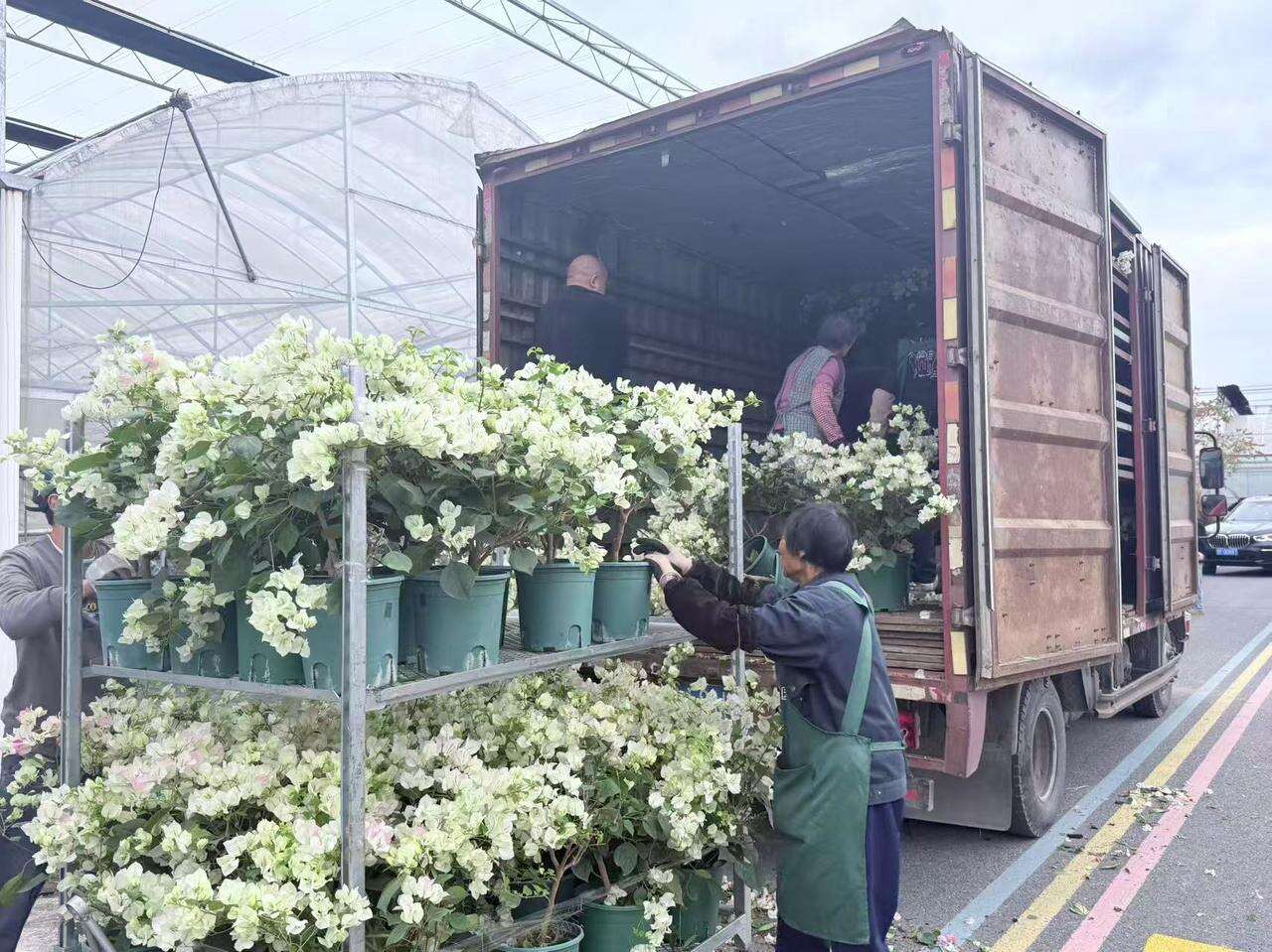 就近就业的村民正在搬运盆栽 记者 汪雨晨 摄