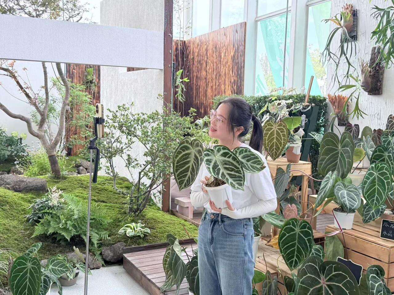 “1万块钱创业,在哪里都是不够的。”她坦言,“但当地的扶持让我喘了口气。”园区不仅提供了优惠的大棚租金和创客宿舍,还为她打造了免费的直播间。“他们觉得我这个想法很好,鼓励我先做,棚租可以慢慢再说。当时一下就有了‘云开见月明’的感觉。”五年间,她的“瓜牛雨林”从销售热带植物发展到自主育种,基地汇聚了超过400种室内热带植物种质资源,自主选育成功并投入市场的花烛新品种就达到12个。