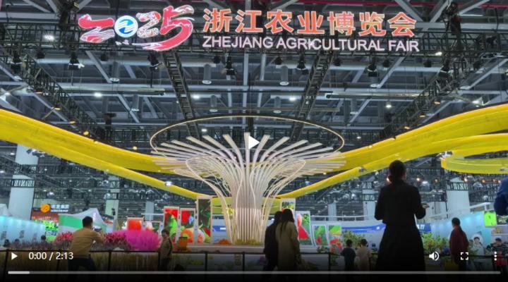 2025浙江省农业博览会正在杭州国际博览中心举行。在1D展区,浙江省农业农村厅设置的“土特产富”板块引发观众驻足。