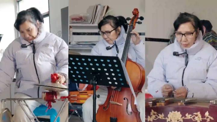 59岁的王德花,是缙云县城一家工厂的食堂阿姨,灶台前,她能烧出各式美味的家常菜,灶台外,她也能玩转各式乐器,在乡村婺剧演出的乐队里,是实打实的“C位人物”。
