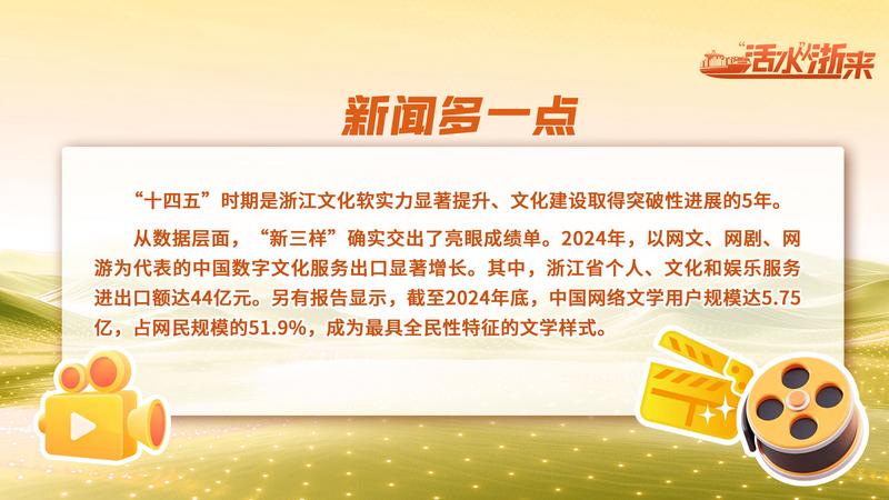 作为数字经济先行地,浙江以网文、网剧、网游为代表的文化“新三样”发展较快。通过积极探索“新三样”精品评价体系,致力于将本省打造成为文化“新三样”高质量发展和高水平出海的示范高地。