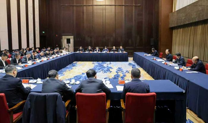 12月17日,省委书记王浩在台州主持召开部分县(市、区)党委书记座谈会,就更好谋划明年经济工作听取意见建议。潮新闻记者 李震宇 摄