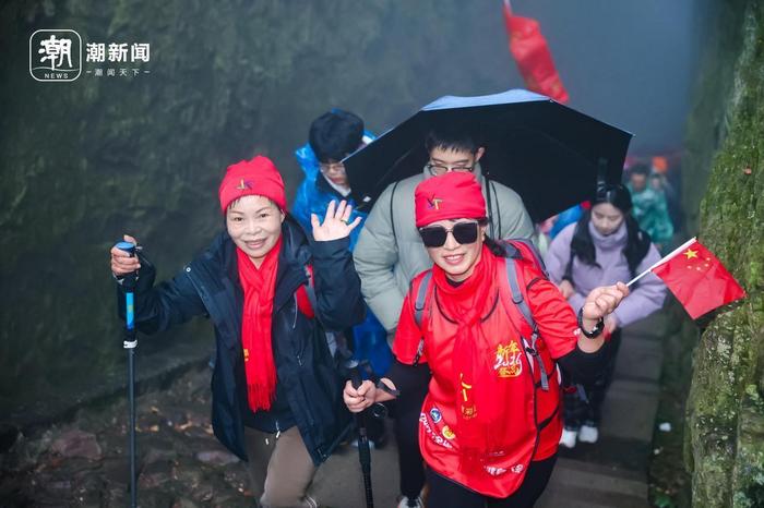 “全国新年登高活动正式开始!”上午10时,在位于江山江郎山景区的南方主会场,随着发令员的一声令下,1万余名登山爱好者向江郎山进发。尽管天空飘起了细雨,却丝毫未减他们的热情,每个人的脸上都洋溢着笑容。“新年登高是我们家的传统,今年已经是第五年啦!”10岁的毛云力挤在人群中,不时回头招呼着他的父母快点跟上。活动现场,汪顺、张雨霏、王曼昱、陈雨菲、黄雨婷等奥运冠军通过视频,体操奥运冠军管晨辰、攀岩世界冠军伍鹏、国家攀岩队速度组主教练钟齐鑫在江郎山和登山群众一起共祝祖国繁荣昌盛,人民安居乐业。
