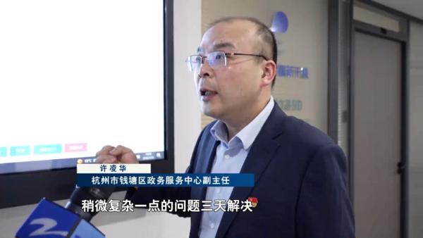 杭州市钱塘区政务服务中心副主任 许凌华:简易问题我们要求一天解决。稍微复杂一点的问题三天解决,在营商环境优化方面不断地升级迭代。