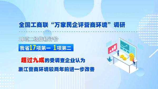 优化便企服务,是营商环境评价中政务环境的重要指标。眼下,我省11个设区市、90个县(市、区)、7个省级新区实现企服中心全覆盖,企业“进一扇门办所有事”。此次“万家民企评营商环境”调研中,18项二级指标评价,我省17项第一、1项第二,有超过九成的受调查企业认为浙江营商环境较两年前进一步改善。