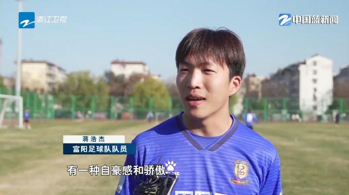 富阳足球队队员 蒋浩杰:有一种自豪感和骄傲,能代表富阳去比赛,也希望能为自己的家乡做出点贡献,基本上每天晚上都在富阳这边训练。