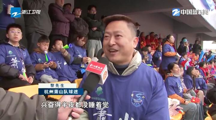 杭州萧山队球迷 黎先生:兴奋得半夜都没睡着觉。关键比赛不在于输赢,在于这种氛围。